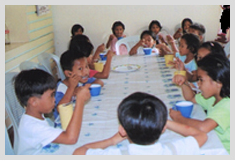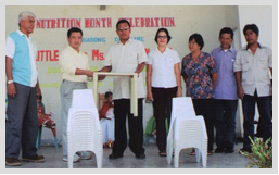 A daycare center in Pantukan, Compostela Valley accepts MDFI's donation of chairs and tables.